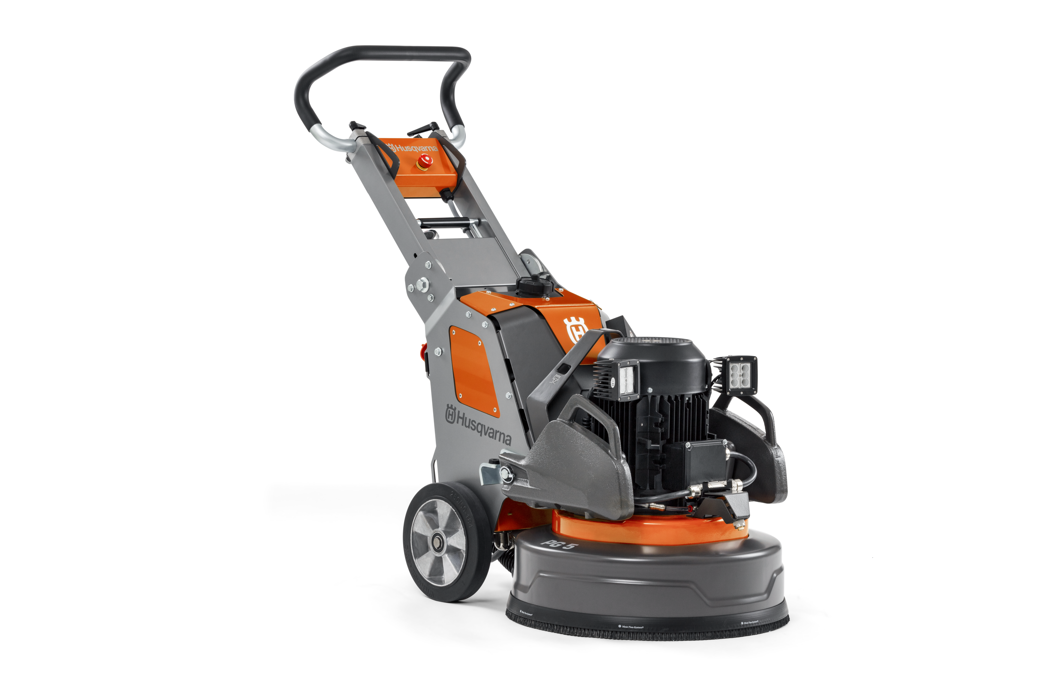 The PG 5 is a compact and powerful planetary floor grinder with three grinding discs and a 4 kW motor. It is suitable for everything from removing coatings to grinding and polishing concrete or natural stone. The machine also features a mist cooler system that cools the diamond tools during operation, significantly increasing the removal rate and reducing the risk of glazing the tools (compared with not using the mist cooler system). For convenience, the chassis can be easily separated from the grinding head and the weights dismounted prior to transport.