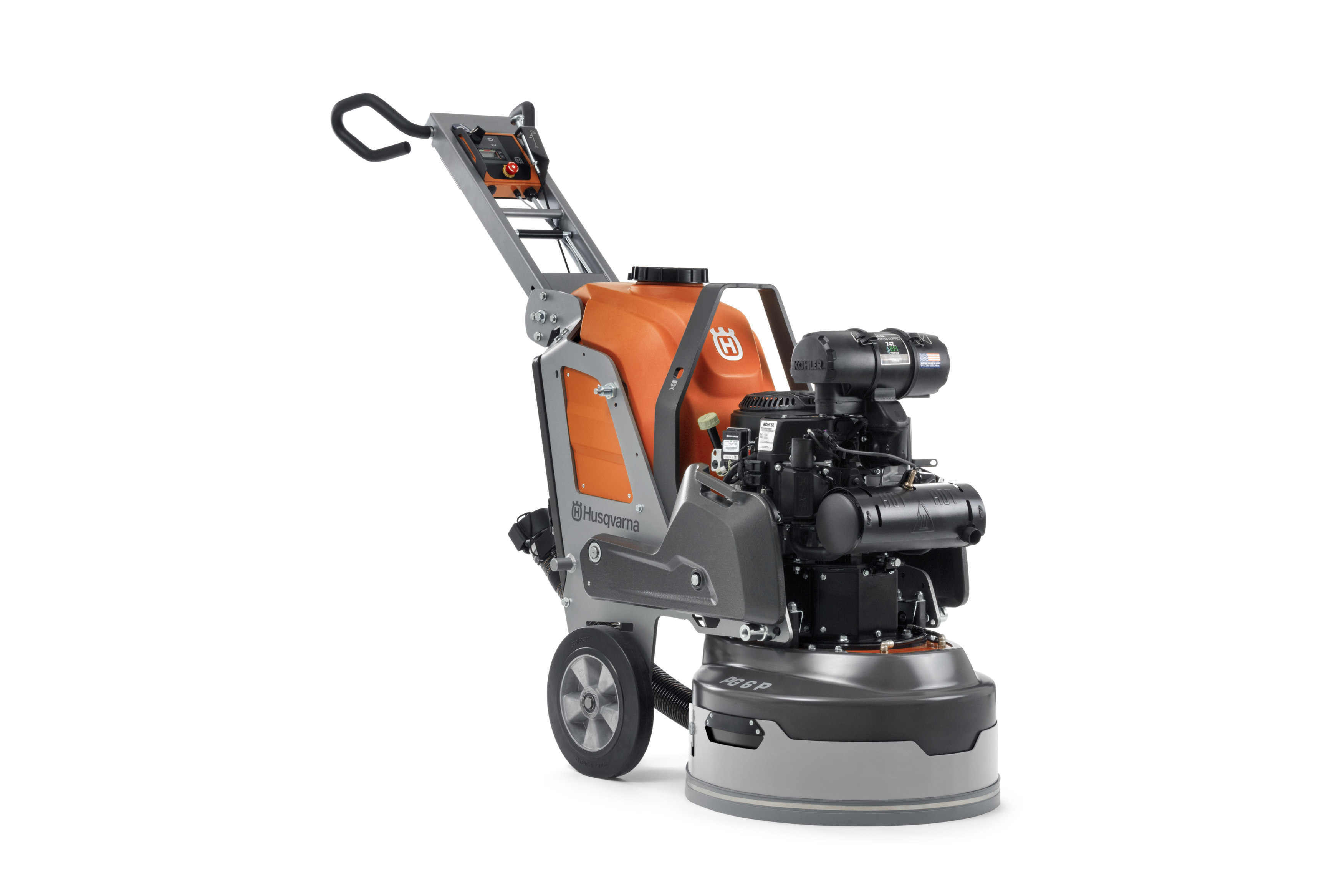 A propane-powered version of our versatile Husqvarna PG 6 floor grinder. An integrated water tank enables wet grinding, while the propane engine eliminates the need for electrical access – making the PG 6 P the perfect choice for large outdoor concrete slabs. The electric fuel-injection system reduces fuel consumption, while the exhaust catalyst further lowers emissions. Key components are sealed against dust and slurry for maximum reliability and low maintenance. Adjustable weights are included with the grinder, providing extra grinding pressure and making the machine easy to handle, tilt and operate. For dry applications, combine your grinder with a Husqvarna cordless dust extractor. Use a Husqvarna slurry vacuum to manage slurry when wet grinding, or connect the PG 6 P to a Husqvarna cordless dust extractor to manage dust when dry grinding.