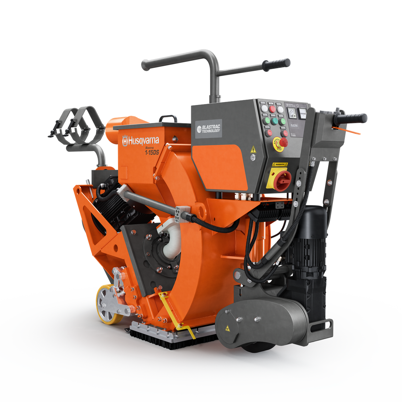 The Blastrac 1-15DS walk-behind blast-cleaning machine offers a high level of versatility and its heavy duty blasting ability makes it optimal for large sized surface preparation applications. It is ideal for cleaning and preparing surfaces such as concrete and asphalt before the application of a new coating. It can also be used to prepare steel surfaces. The Blastrac 1-15DS is equipped with its own height adjusting system for easy transportation. The drive motor for self-propelled operation helps maintain speed on ramps and inclines.