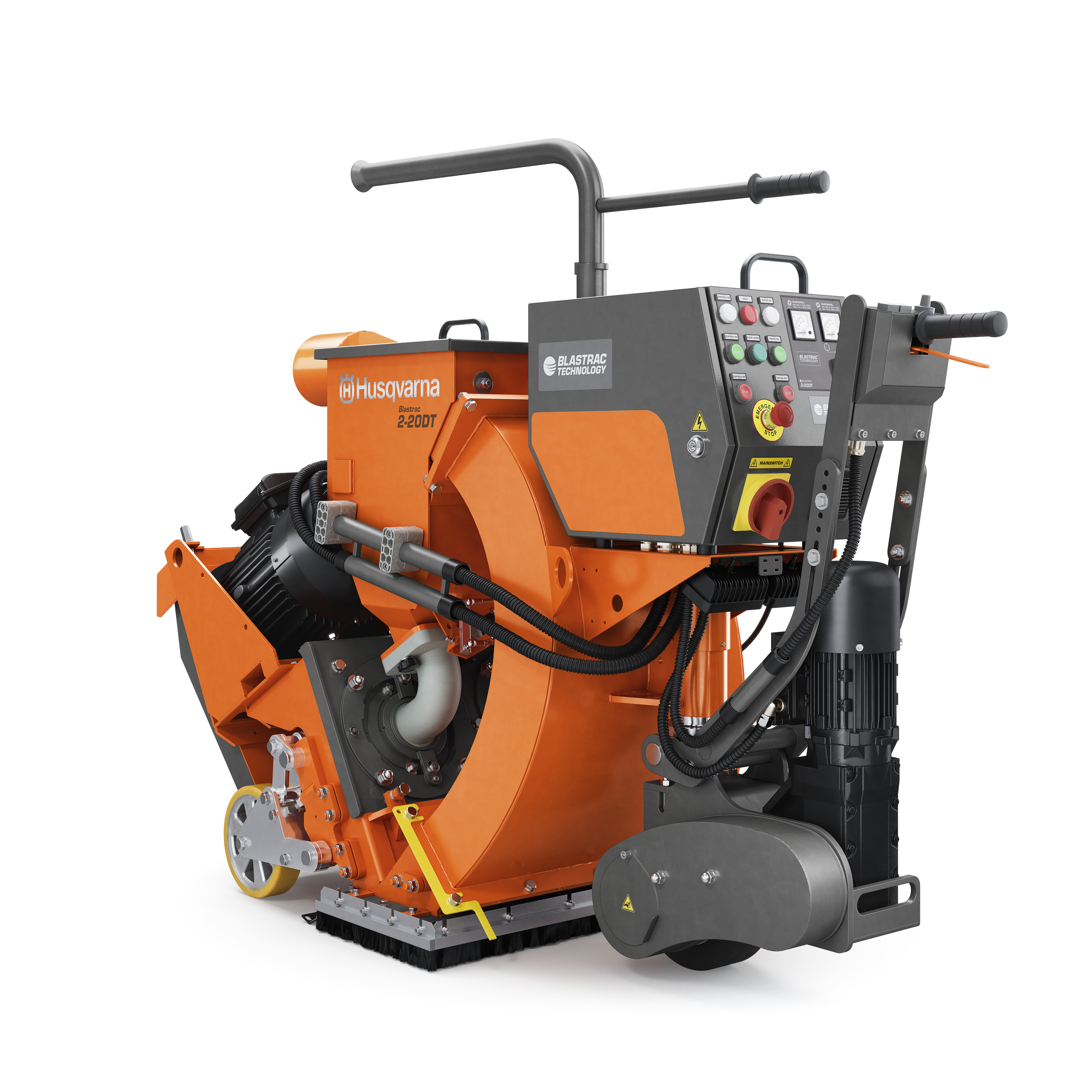 The Blastrac 2-20DT walk-behind shot blasting machine is a professional heavy duty machine. It is equipped with two powerful blast motors and is ideal for large sized surface preparation applications. The Blastrac 2-20DT is equipped with its own height adjusting system for easy transportation. In addition, its drive motor for self-propelled operation helps maintain speed on ramps and inclines. Whether improving traction and skid resistance or prepping for coatings and overlays, the versatile Blastrac 2-20DT strips, cleans and profiles concrete and asphalt, or horizontal steel surfaces in one easy step.
