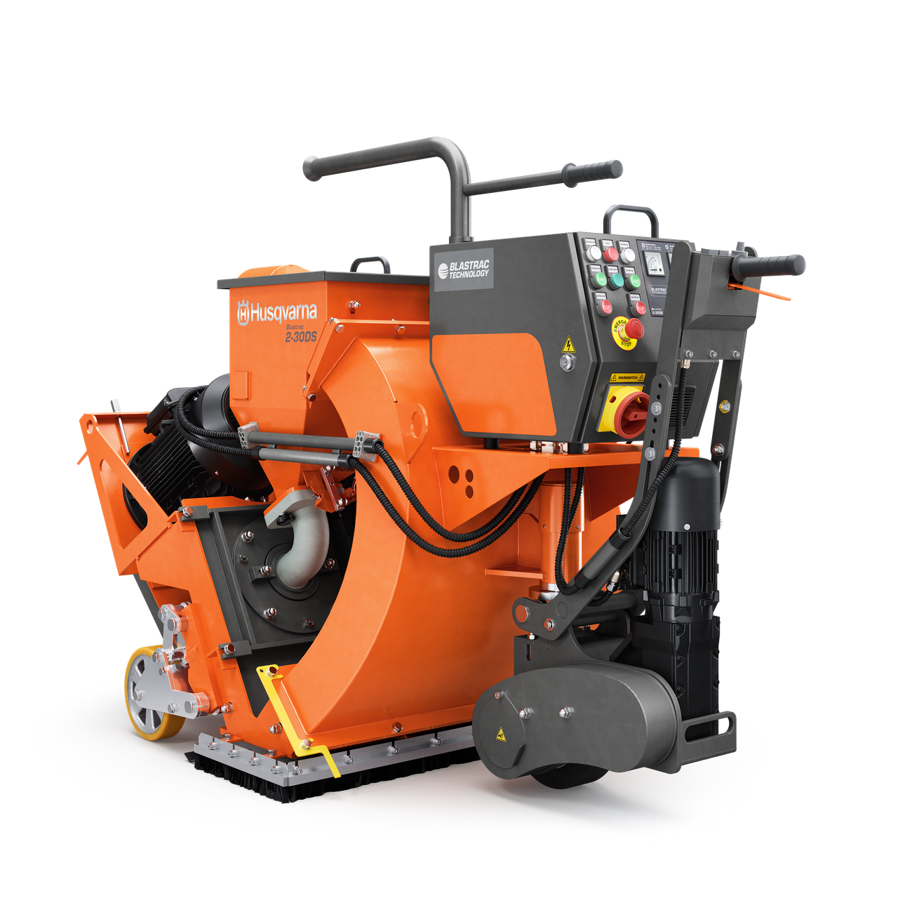 The Blastrac 2-30DS walk-behind shot blasting machine is designed for the big jobs that require high productivity. Equipped with a drive motor that helps maintain speed on ramps and inclines makes it ideal for parking decks. The Blastrac 2-30DS is equipped with its own height adjusting system for easy transportation. It's also ideal for industrial plant and warehouse floors, parking garages, ship decks, highway or bridge work, airport runways and other large jobs. A high-speed travel switch on the Blastrac 2-30DS helps ensure uniform surface preparation by allowing for quick repositioning after each pass, without resetting the travel speed.
